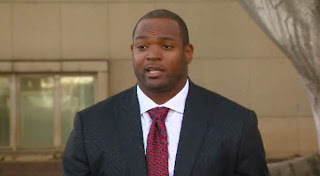 “Attorneys for NFL linebacker Dwight Freeney (pictured) announced the filing of the lawsuit against Bank of America in downtown L.A. (CBS)”