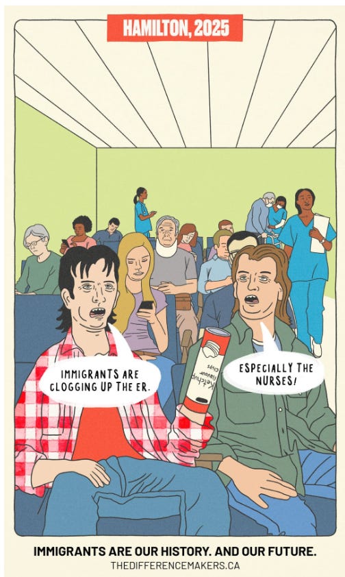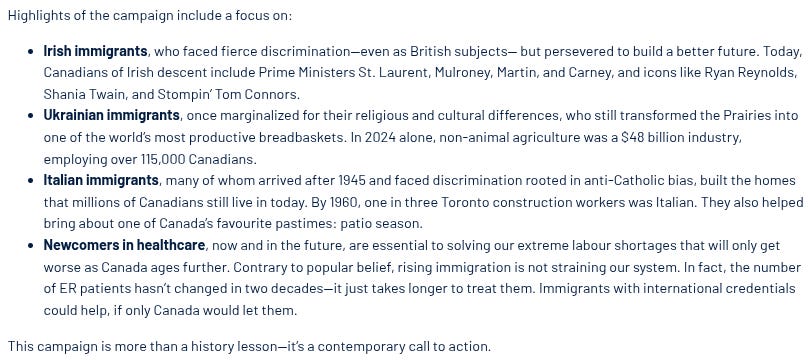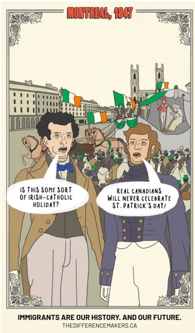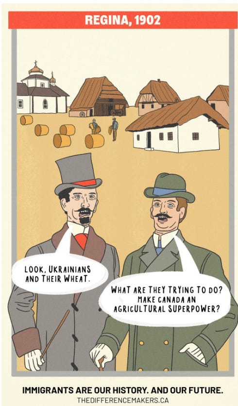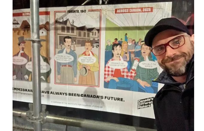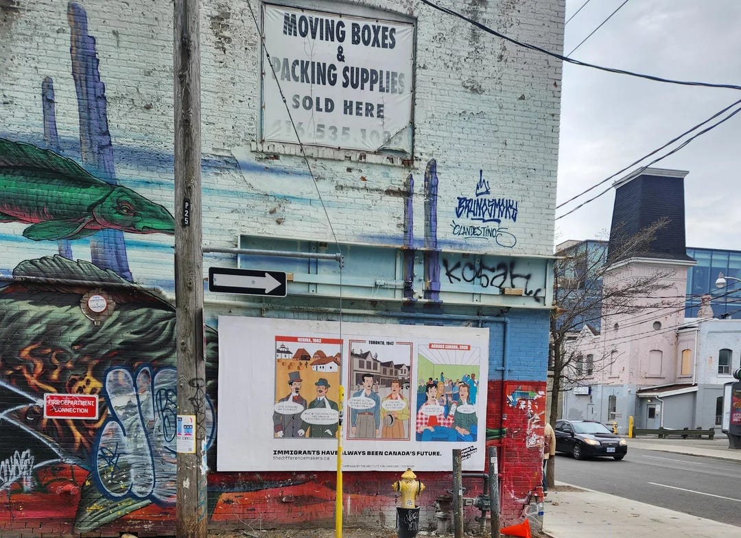 "cartoons of contempt: when satire becomes state weaponryHave you ever felt like your government hates you?"the canadian federal election dominated headlines last week, and amidst the chaos, a smaller, yet still explosive, scandal emerged that went almost entirely unnoticed. "no outlet has yet picked up this story, but they should, and probably will, soon, when this agitprop campaign expands from t oronto to every major Canadian city. The first source to find this story was the /r/CanadianHousing2 subreddit, 15 days ago, when user ''Tronojin'' posted a picture of three strange posters plastered on a Toronto street corner — satirical cartoons mocking Canadians who oppose mass immigration as ugly, dimwitted cavemen. ''I've seen these posters in a couple different spots now. Depicting people who are against the current immigration policies as shortsighted, ugly, three chinned neanderthals. If you go to the website, it's clear their core ideology is that immigration is always a positive no matter what. Even if the conditions were different back when the Ukrainians and Italians came, even if the number of immigrants that came in was substantially lower than what we're seeing now, it will always be a positive. This demonization is why people don't feel like they can discuss the merits of immigration policy without being branded some backwards racist living in the past.'' The Reddit post shows three posters, but in reality, there are four. Let's examine each one more closely and then trace the funding to uncover who is behind this campaign and why. The first poster depicts Quebecers in 1847 opposing Irish immigration as intellectually disabled troglodytes with drooling, slack-jawed, inbred expressions. The second poster depicts cognitively impaired Saskatchewanians in 1902 complaining about Ukrainian immigrants, fretting that they might "transform Canada into an agricultural superpower"—as if that was a genuine xenophobic fear people had. Between 1891 and 1914, roughly 170,000 Ukrainians, primarily from the Austro-Hungarian provinces of Galicia and Bukovyna, arrived in Canada's prairies under the Dominion Lands Act. There was no safety net waiting for them. No welfare, no child tax credits, no government handouts. The endless sky was their only promise and harsh winters were their only certainty. They built something from nothing. Today's immigrants to Canada, in contrast, disproportionately rely on welfare. How much do illegals and refugees receive in benefits in their first year from Canada's taxpayers?