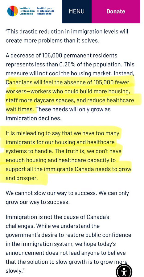 The third poster shows seemingly mentally-disabled white Canadians in 1949 complaining about Italians ''building homes and opening restaurants.'' Again — as if ''too many homes'' and ''tasty food'' was an actual fear people had, and is if that is comparable to modern Canadians complaining about healthcare shortages. Let's be blunt: thousands of people will read this Substack article, and close to 100% of you will agree that thousands of Irish, Ukrainian, and Italian immigrants are infinitely preferable to millions of Punjabi immigrants. Because that's what we're really talking about here, right? Punjabi immigrants? Most immigrants to Canada come from India, and most of those, in turn, come from the tiny state of Punjab, the 16th-largest Indian state. These Punjabis come here seeking to benefit from the foundations others laid, and the ones who don't leech off welfare work as UberEats drivers, Tim Hortons cashiers, visa scammers, fentanyl traffickers, and car thieves (Canada is now the car thefts capital of the world)… and then have the gall to compare themselves to the brave and industrious settlers from 200 years ago who built this country. The fourth and final poster depicts present-day Canadians in an ER, complaining about "immigrants clogging up the ER." Notice how the first three posters specifically name white countries—Ireland, Ukraine, and Italy—yet, in the final hospital scene with brown nurses and a crowded waiting room, no nationality is mentioned. This omission is intentional. By avoiding a direct reference to "Punjabis clogging up the ER," they steer clear of making the message too obvious. However, when it comes to white countries, they're meticulous in naming them. This is clear propaganda at work. This is what the Laurentian Elite really think of ordinary Canadians: they think you are retarded; they hate you; they are actively replacing you with your own money. We are in the middle of the worst healthcare crisis in Canadian history. In 2024, emergency room wait times averaged 30 weeks—the longest ever recorded. That's a 222% increase from 1993. On average, patients now wait 30 weeks between a referral from a GP and seeing a specialist. The worst healthcare shortage in Canadian history is primarily driven by the largest immigration spike in Canadian history. Just like the worst housing shortage in Canadian history is driven by immigration. And declining GDP per capita? Also driven by immigration. It's completely dishonest to pretend open borders are making Canada better. Who is funding this propaganda campaign?The bottom of each poster links to a specific website: The first thing you will see if you click on that link is a morbidly obese Indian woman laughing in your face, seemingly chosen to be a human middle finger: The actual institute running this campaign is The Institute for Canadian Citizenship (ICC), a registered charity whose mission statement is to "deliver programs and special projects that inspire inclusion, create opportunities to connect, and encourage active citizenship across Canada." According to the ICC's press release, this is a "coast to coast campaign" with "very large wild postings in Ottawa, Toronto, and Calgary, and digital banners at 40 Cineplex locations across Manitoba, Alberta, Ontario, Nova Scotia, and British Columbia." The ICC board is led by a team of 1 Jewish man and 3 Indians. The CEO of ICC is another Jewish man, Daniel Bernhard. Bernhard claims that it's misleading to argue that Canada has too many immigrants for its housing and healthcare systems to handle. Instead, he says that the real problem is not an excess of immigrants, but a ''lack of housing and healthcare capacity.'' Dishonest semantics. He's a liar. "with a straight face, he then wrote an op-ed in the globe and mail proclaiming that the 'cure for canada's housing crisis' was to 'boost immigration': "Bernhard has 29 employees listed under him on the icc website—and not a single one of them is a White man. these are the people flooding punjabis into canada, and instead of showing gratitude, they sneer and mock us. ask yourself: if I moved to india, and spent my time trying to replace indians, wouldn't that make me a monster? "you might think, 'wow that's a big staff for a charity I've never heard of, where do they get all that money?' my friend on twitter had the exact same thought, and did a deep dive into their funding sources. according to their 2024 financial statements, the icc received just over $2 million from immigration, refugee, and citizenship canada; this is part of a 5-year grant worth roughly $10 million. in addition they received another $1.7 million in 'other government grants. In total, two-thirds of ICC's revenue comes from government subsidies. "this isn't just wasting taxpayer dollars; it's the government using those funds to actively harm canadians. most people are unaware of how billions in ngo funding are being squandered to undermine their lives. hundreds of institutions exist solely to antagonize canadians and political parties. the left controls academia and the media, backed by a network of aligned ngos—like the icc—shaping culture and cultivating future activists. "as for the third of the icc's revenue that comes from private donors, that mostly comes from canada's largest and most influential corporations (whose business models rely on cheap labor). "is this legal?"short answer, strictly speaking: no. "if any other charity put up racist caricatures of Jews, moslems, indians, africans, etc. they would be torn down immediately and the propagandist prosecuted. "imagine, for example, if I started a charity dedicated to plastering hateful cartoons of somali immigrants in every major city: not only would the government refuse to fund it, I would be arrested in under a day. "long answer: I've learned that canada doesn't really have 'laws,' per se; canadian courts operate on the power and whimsy of the ruling elite. right now, the ruling Lau